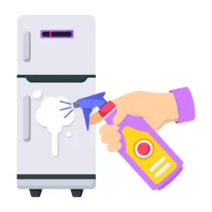 - Spray your chosen solution generously on fridge walls, door seals, and corners.
